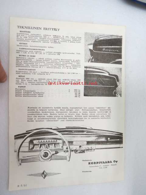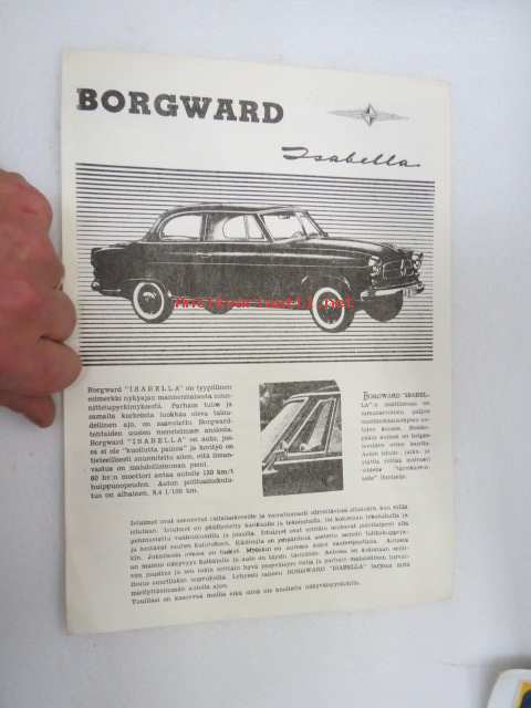 Borgward Isabella -myyntiesite / brochure (kopioitu markkinointikäyttöön jossain lehdessä olleesta esittelystä - ("kotikutoinen")