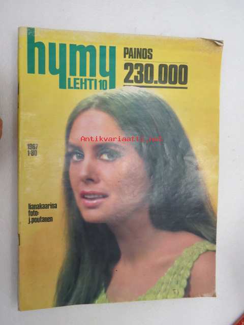 Hymy lehti 1967 nr 10 lokakuu, sis. mm. seur. artikkelit / kuvat / mainokset; Kansikuva Liana Kaarina (kuvannut J. Poutanen), Harri Piitulainen - Kolmen vuoden