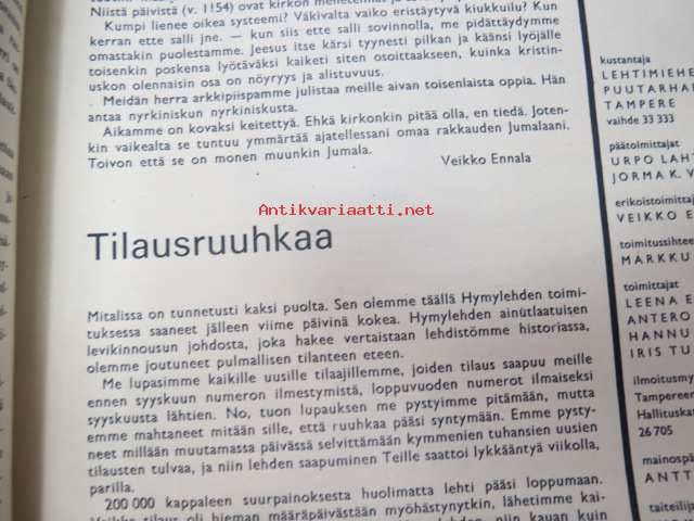 Hymy lehti 1967 nr 10 lokakuu, sis. mm. seur. artikkelit / kuvat / mainokset; Kansikuva Liana Kaarina (kuvannut J. Poutanen), Harri Piitulainen - Kolmen vuoden päästä olen Euroopanmestari, Työministerin ei tarvitse olla kalju - Matti Kaleva Kekkonen, Pekka Laiho, Harri Toivonen - Huima hyppy kahdeksasta kilometristä, Homoseksualistitkin ihmisen arvoisiksi?, Kuinka Hymylehti munitaan - toimituksen henkilöesittely, Olavi Virta tervehtynyt ja taas keikoilla, Veikko Ennala - Pontikankeitto, Esko Mustonen - Sävellahja, Kallis suomalainen kuolema, Suuri Jäähallisirkus osa II, Juha "Watt" Vainio - Ärsyttävä, Veikko Ennala - Hullun päiväkirja, Kalle Reijonen - henkimaailman mies Karkkilasta, Murhaajan muotokuva - Richard Speck, Muistatteko - Risto Elimäki - Korian kirkon portaille jätetty vauva, ym. 21 x 29 cm.
