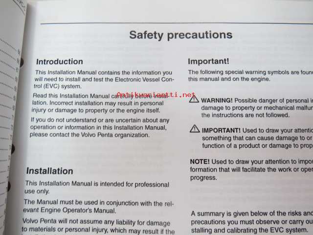 Volvo Penta IPS EVCec-C - Electronic Vessel Control D4, D6, D9 B E 1(1) -asennusohjekirja englanniksi
