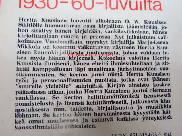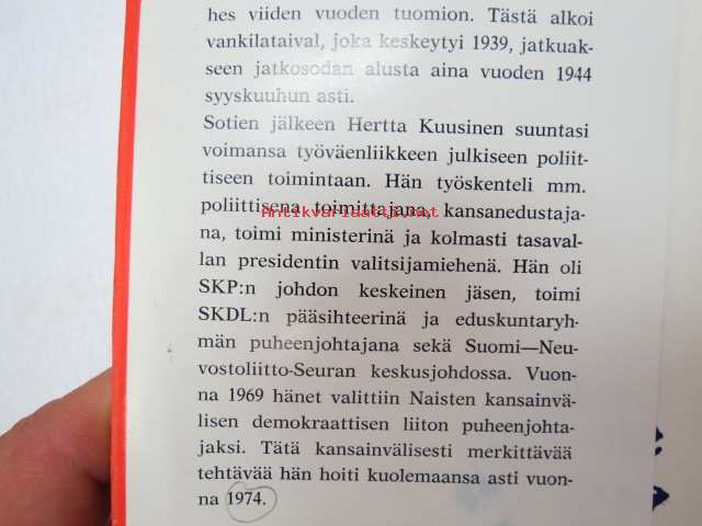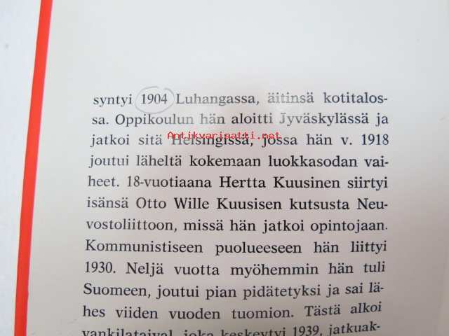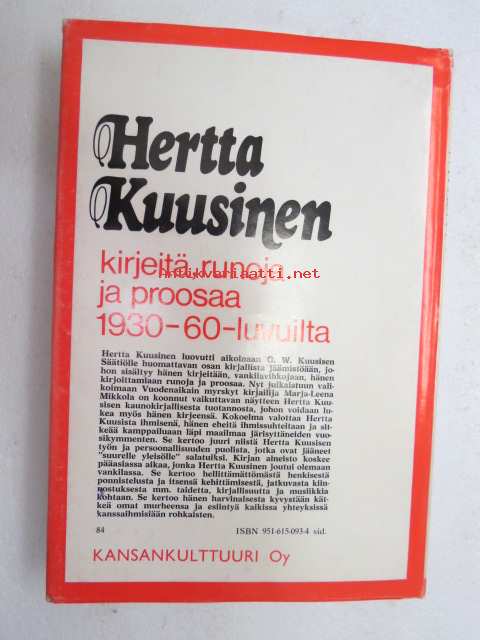 Hertta Kuusinen, Kansankulttuuri Oy, 197514 x 21 cm.