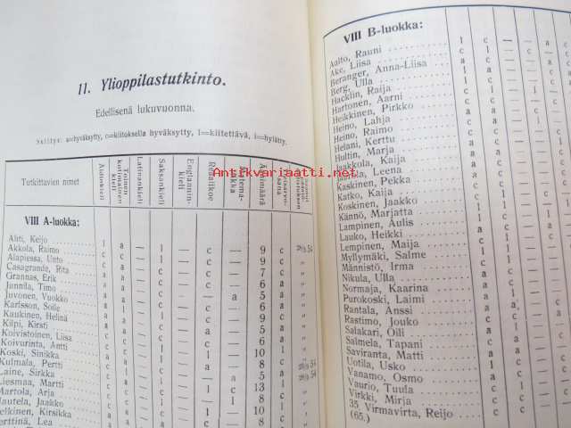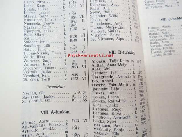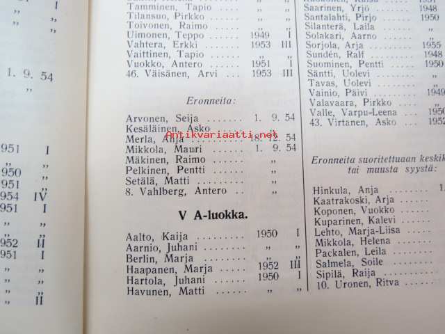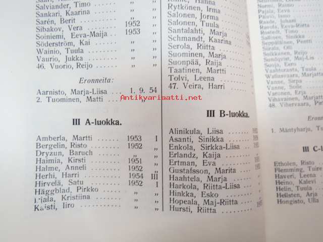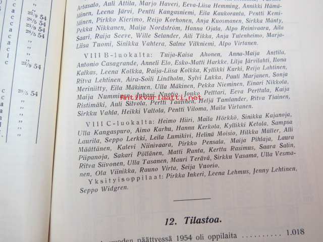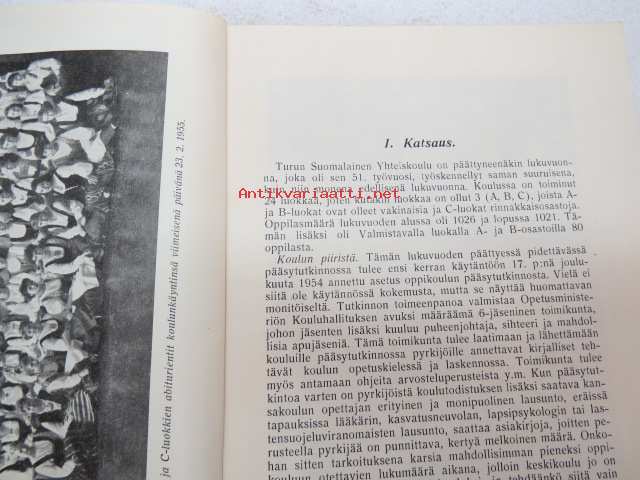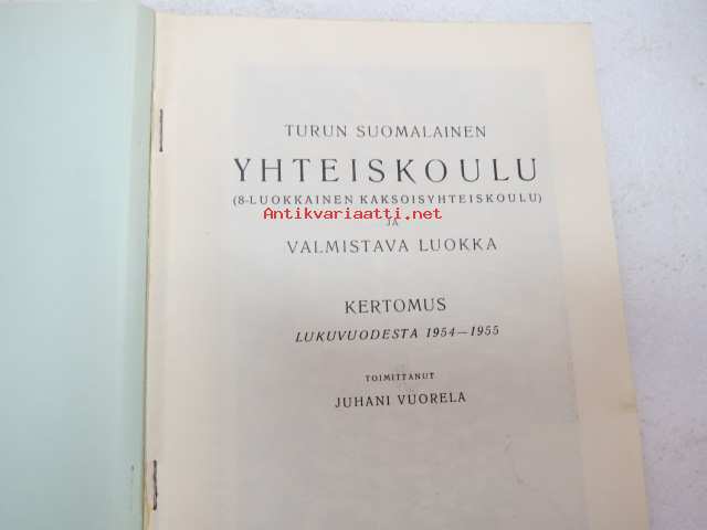 Turun Suomalainen Yhteiskoulu TSYK lukuvuonna 1954-1955 -vuosikertomus oppilasluetteloineen -school yearbook with pupils listings