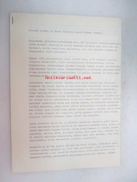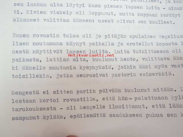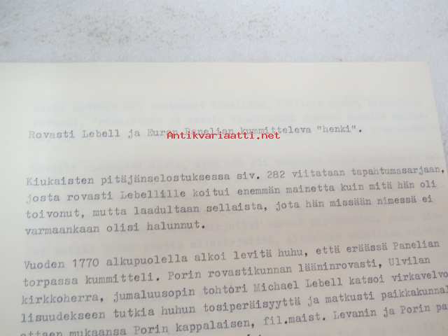 Rovasti Lebell ja Euran Panelian kummitteleva "henki" - kirjailija Yrjö Käkönen -kirjoitus Suomen historiasta / kansanperinteestä - artikkelikäsikirjoitus - author´s article on finnish traditional tales