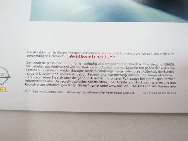 Opel Astra OPC 2002 -myyntiesite / brochure