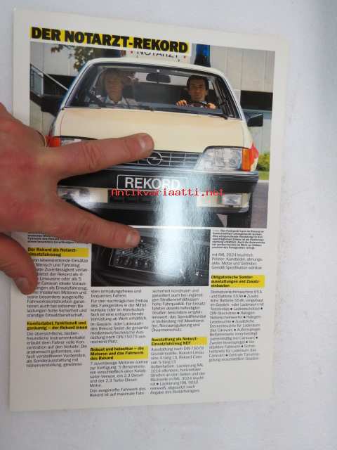 Opel - Der Notarzt-Rekord 1986 -myyntiesite / brochure