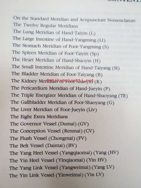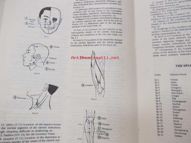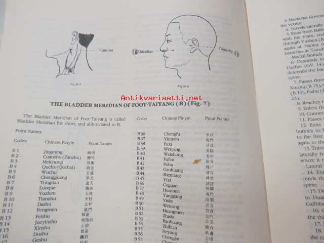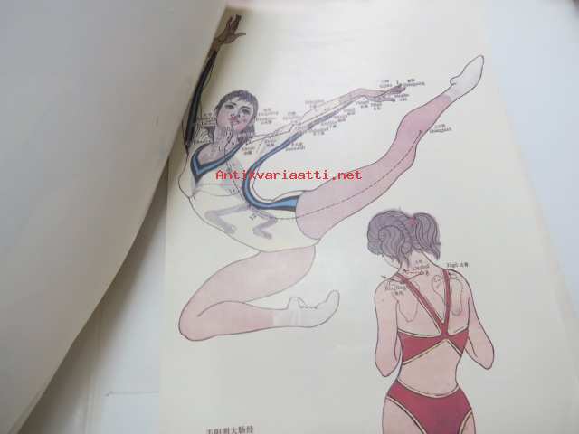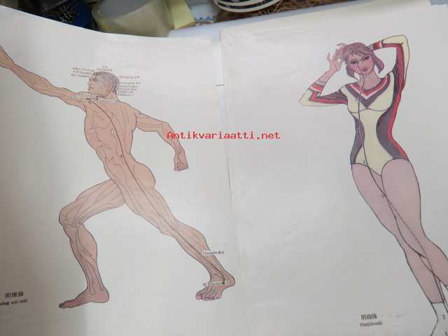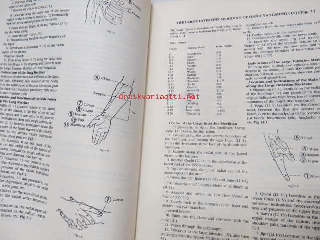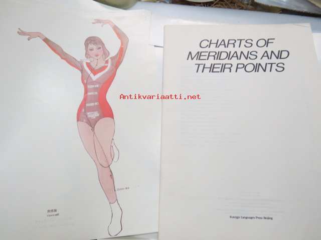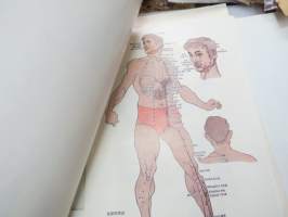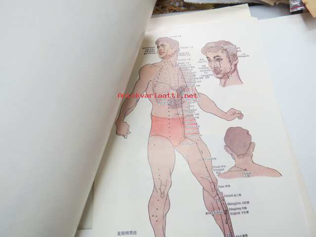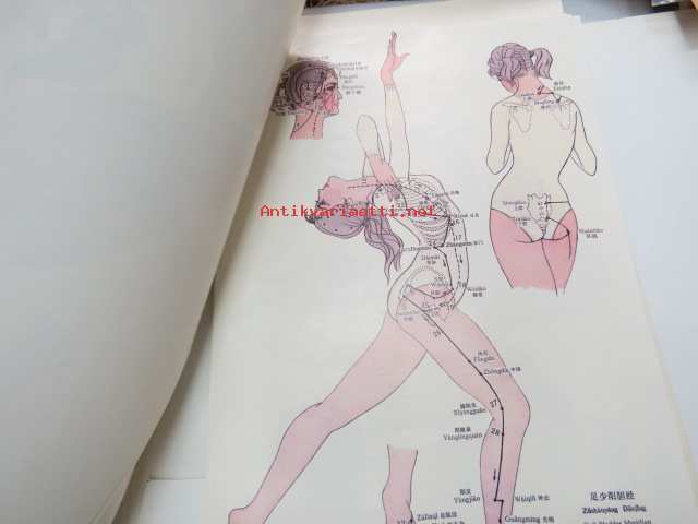 Charts of Meridians and their points -kiinalaisen lääketieteen ihmisruumiin meridiaanit, kuvat ja tekstiosuus