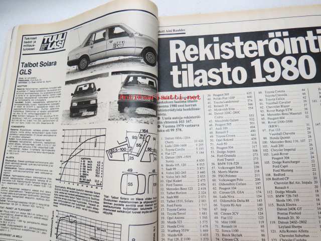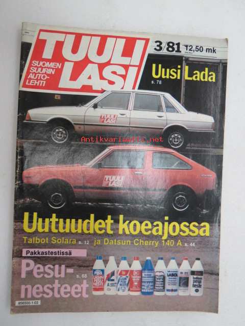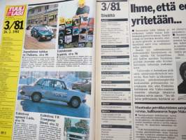 Tuulilasi 1981 nr 3, sisältää mm. seur. artikkelit / kuvat / mainokset; Talbot Solara GLS koeajo, Datsun 140A Cherry GLK koeajo