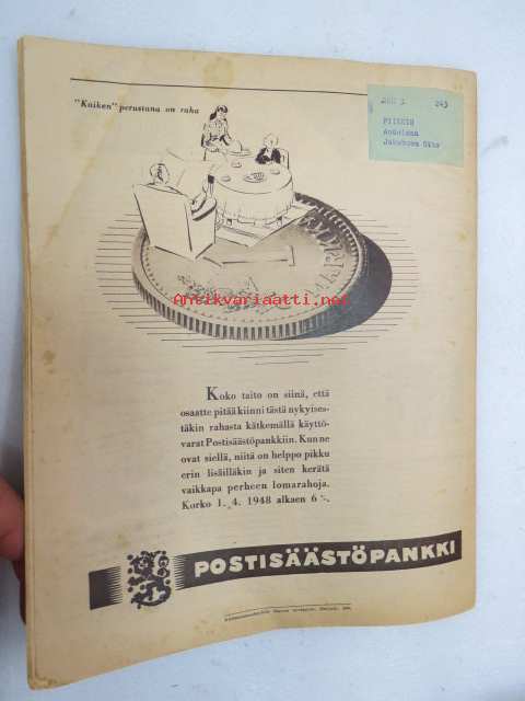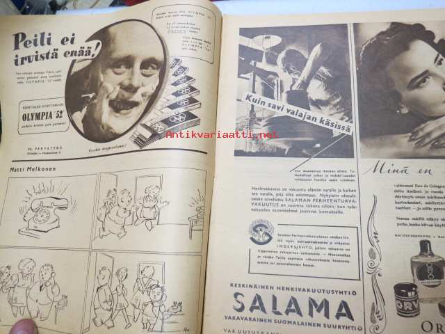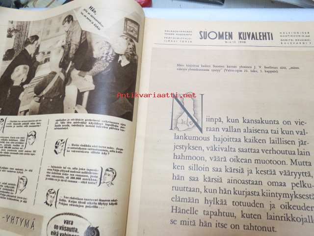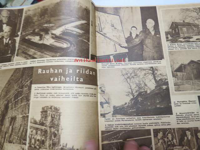 Suomen Kuvalehti 1948 nr 15, ilmestynyt 10.4.1948, sis. mm. seur. artikkelit / kuvat / mainokset; Kansikuva Harjavalta - voimalapadon reikä, Olympia 52