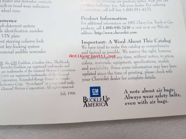 Chevrolet Cavalier 1997 -myyntiesite / sales brochure