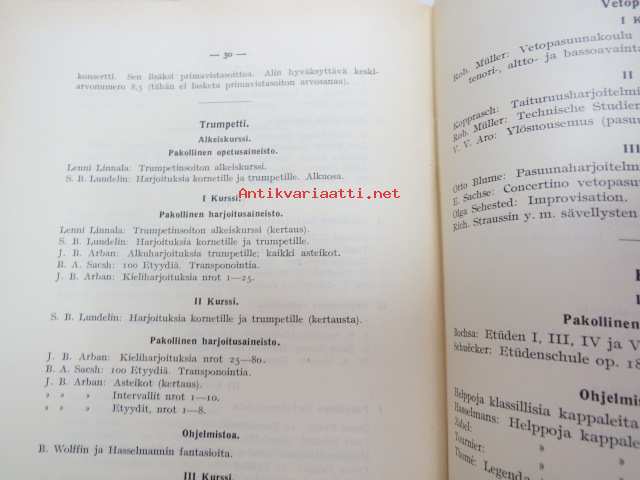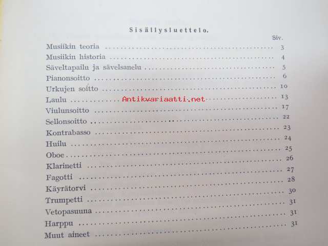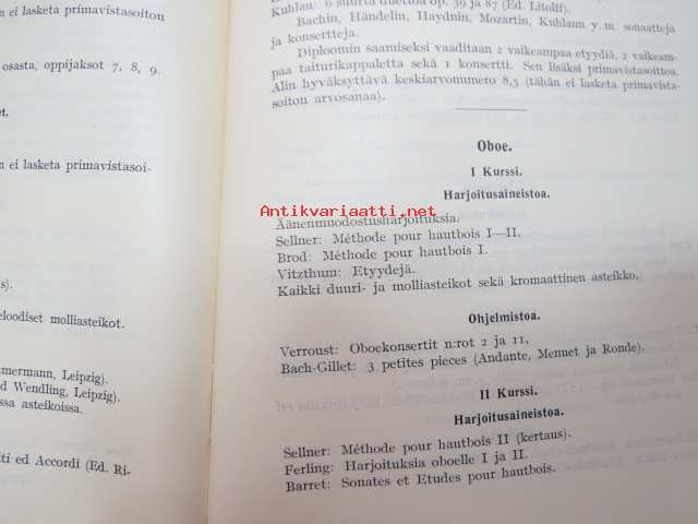 Helsingin konservatorio kurssit 1936 opasvihko -guide to courses
