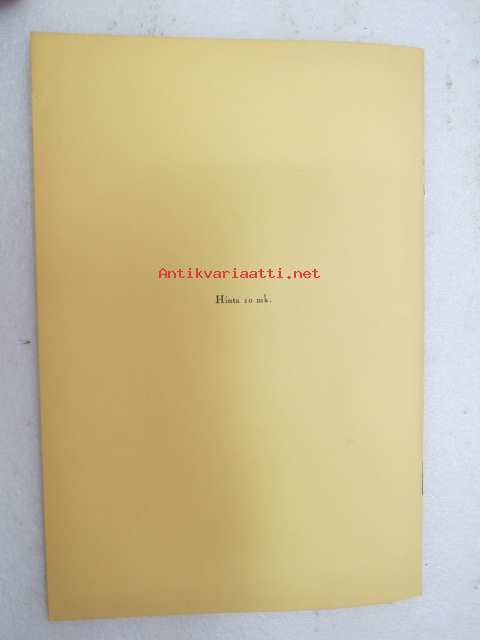 | Saatavilla | 1 kpl | | Julkaisuvuosi | 1936 | | Sivuja | 33 | | Kunto | K3 | | Sidonta/painoasu | Nidottu (pehmeäk.) | | Kielet | Suomi |
