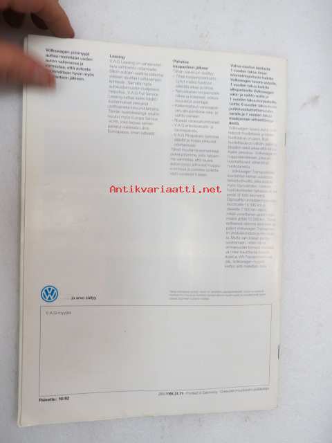 Volkswagen Transporter 1993 -myyntiesite / brochure