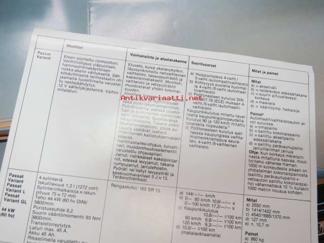 Volkswagen Passat Variant 1981 -myyntiesite / brochure