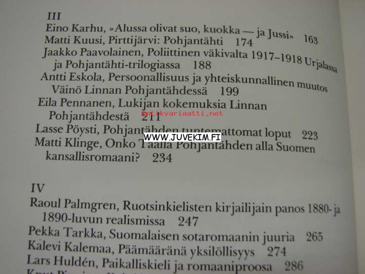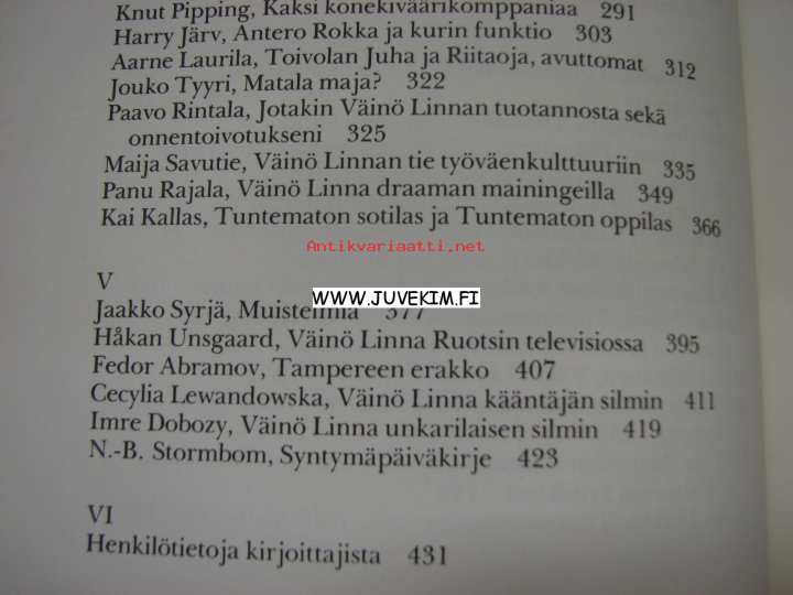 | Saatavilla | 1 kpl | | Julkaisuvuosi | 1980 | | Sivuja | 432 | | Painos | 1. | | Kunto | K3 | | Sidonta/painoasu | Sidottu (kansipaperit) | | ISBN | 951-0-10081-1 | | Kielet | Suomi |