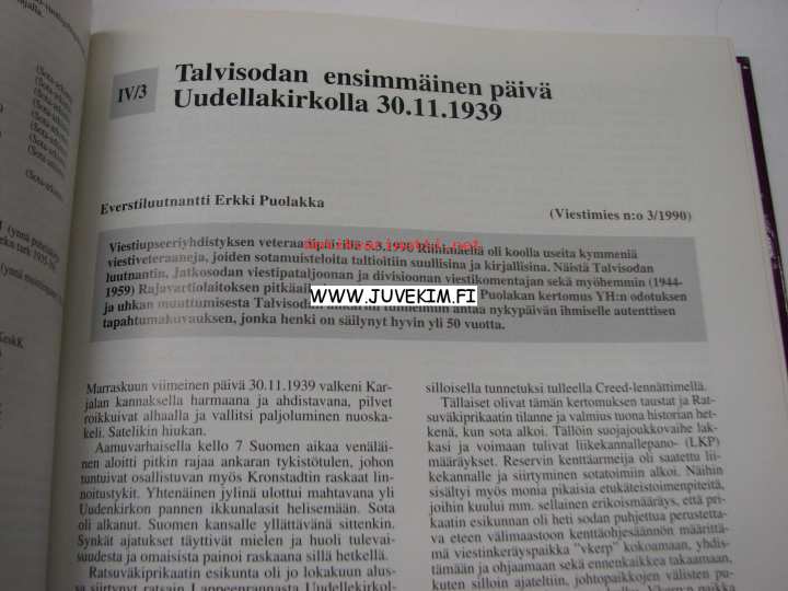 | Saatavilla | 1 kpl | | Julkaisuvuosi | 1993 | | Sivuja | 439 | | Painos | 1. | | Kunto | K3 | | Sidonta/painoasu | Kuvitettu kovakantinen | | ISBN | 951-96704-0-8 | | Kielet | Suomi |