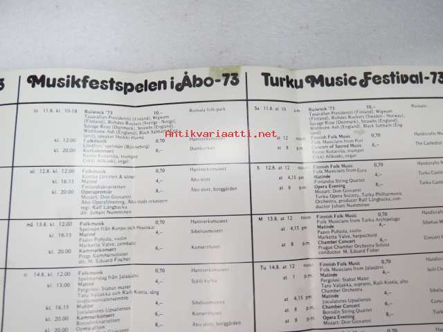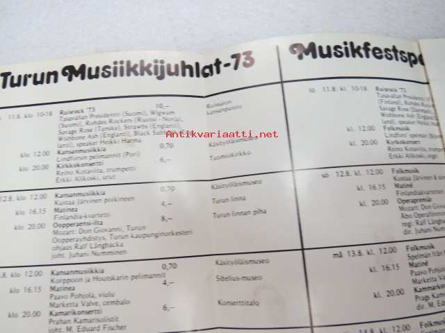 Turku Music Festival 73 11-16.8 Ruisrock - Musikfestspelen i Åbo - Turku Music Festival -esite / broschyr / brochure