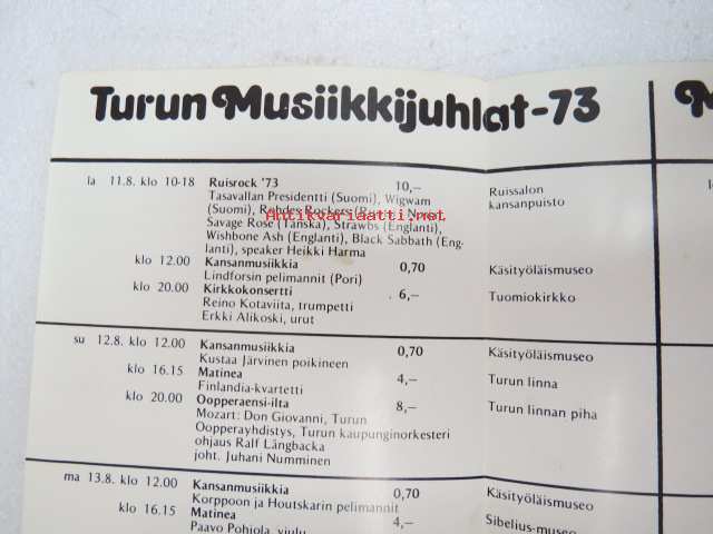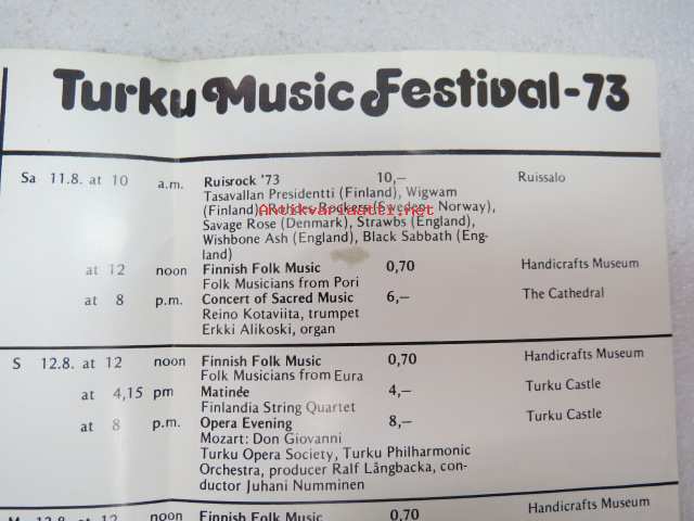 10 x 21 cm. Esiintyjinä mm. Tasavallan Presidentti, Wigwam, Rohdes Rockers, Savage Rose, Strawbs, Wishbone Ash, Black Sabbath, speaker Heikki Harma