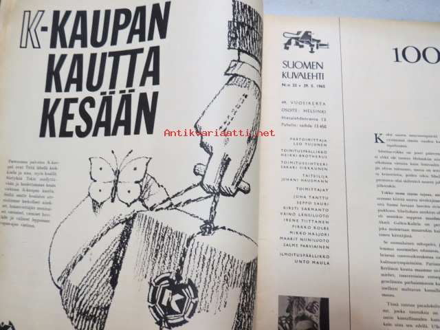 Suomen Kuvalehti 1965 nr 22, ilmestynyt 29.5.1965 -weekly magazine