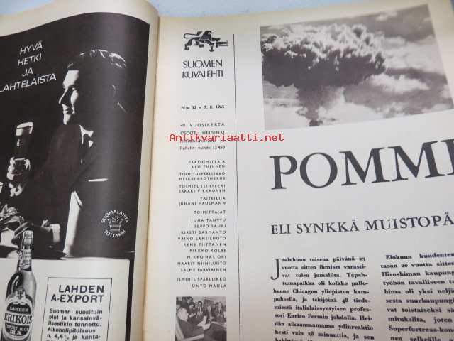 Suomen Kuvalehti 1965 nr 32, ilmestynyt 7.8.1965 -weekly magazine