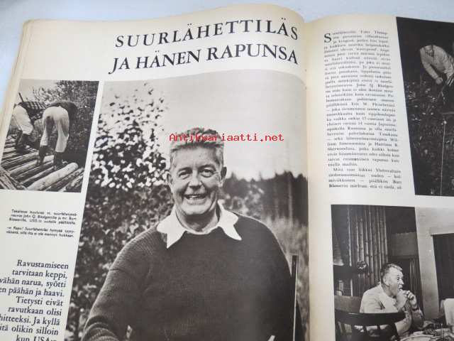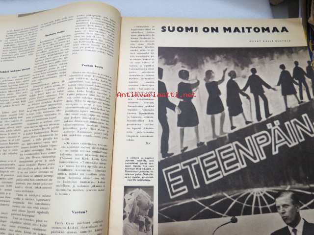 25 x 31 cm. Sisältää mm. seur. artikkelit / kuvat / mainokset; KansikuvaLyndon B. Johnson, Kent-savukkeet, The Renegades, Atomipommin muistopäivä, Suomi on maitomaa, Roughilta greenille ja putti reikään - Golf Suomessa, Kuinka turisteille on kerrottava Suomesta, Englannin viimeinen "virattomaksi" nyttemmin jäänyt Albert Pierrepoint teloitti satoja ihmisiä, ym. -haastattelu