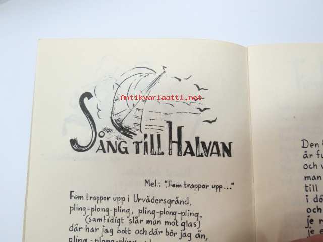Prima Vista - Sång till Helan - Sång till Halvan, Tidsenlig Nubbvisa, E litta vise om seglationa, Vintern rasat ut, Skål, Imbelubna glaset -sång bok / laulukirja