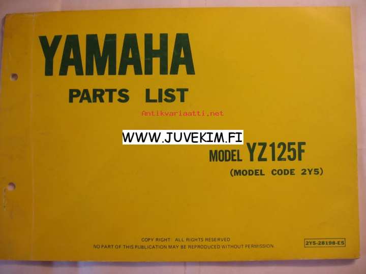 Yamaha model YZ125F model code 2Y5 -luettelo