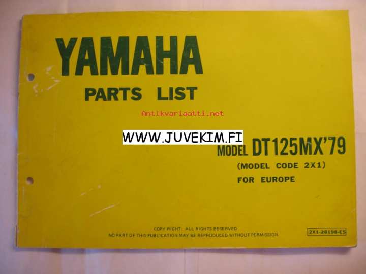 Yamaha model DT125MX'79 model code 2X1 -luettelo