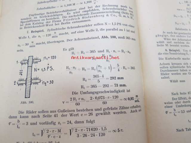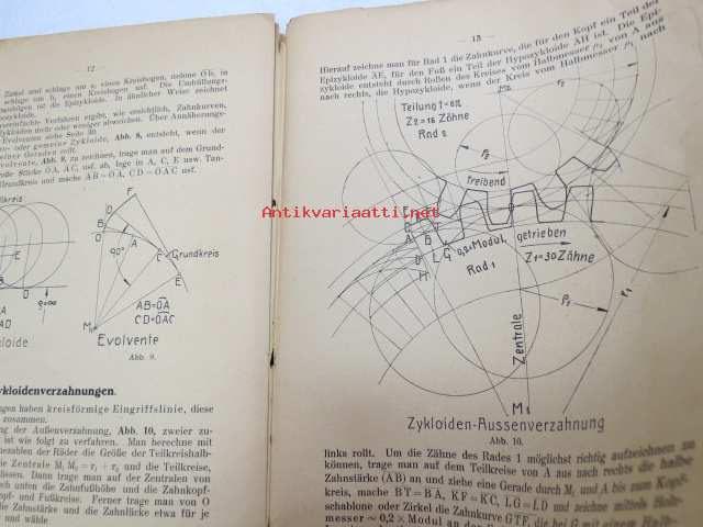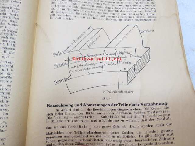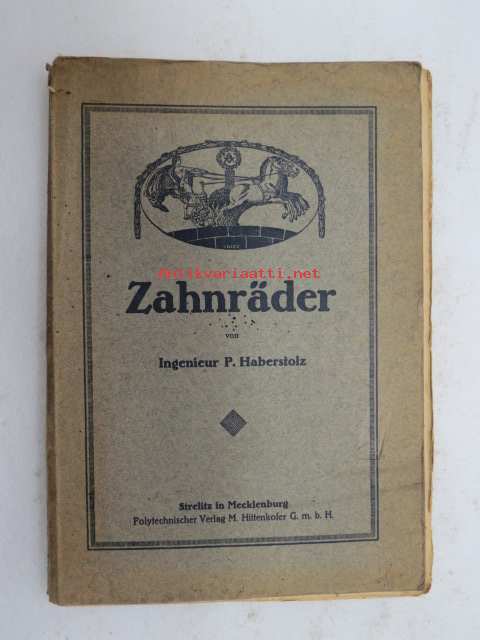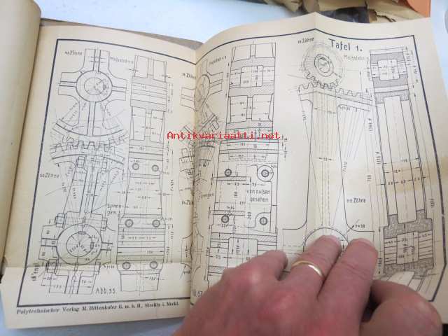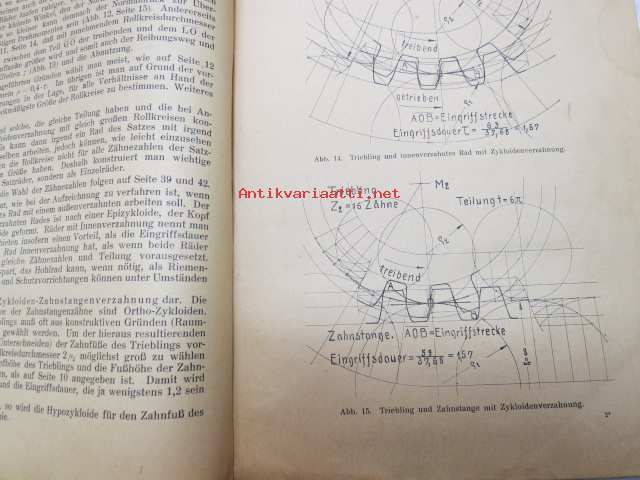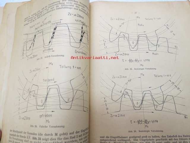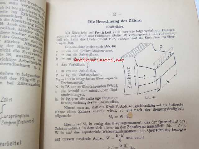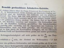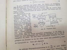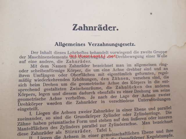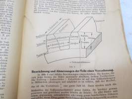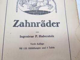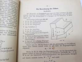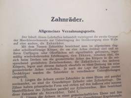 Zahnräder -vaihteet, perinpohjainen saksankielinen tekninen selostus vaihdetekniikasta, niiden laskennasta yms. -gears - technical features