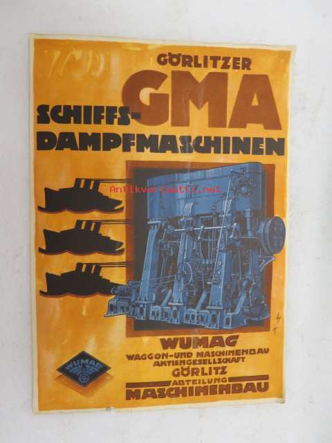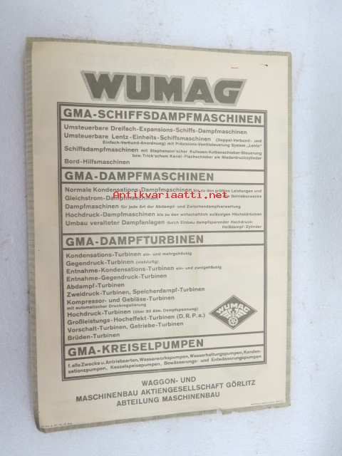 Görlitzer GMA Schiffsdampfmaschinen - Wumag Waggon- und Maschinenbau Ag Görlitz -laivamoottori, myyntiesite saksaksi / brochure