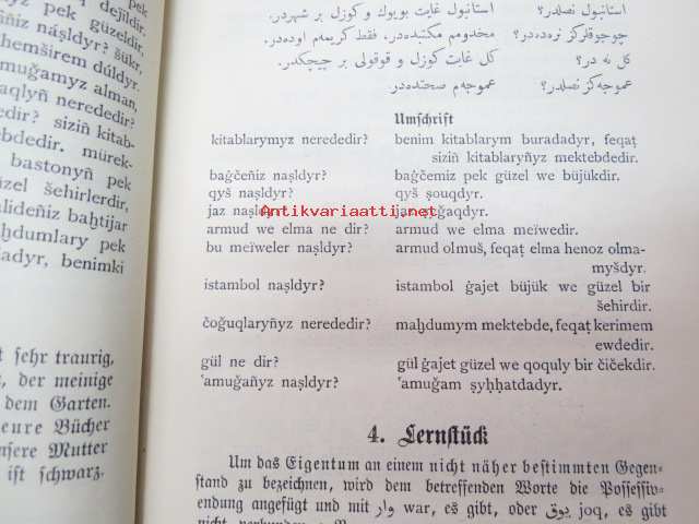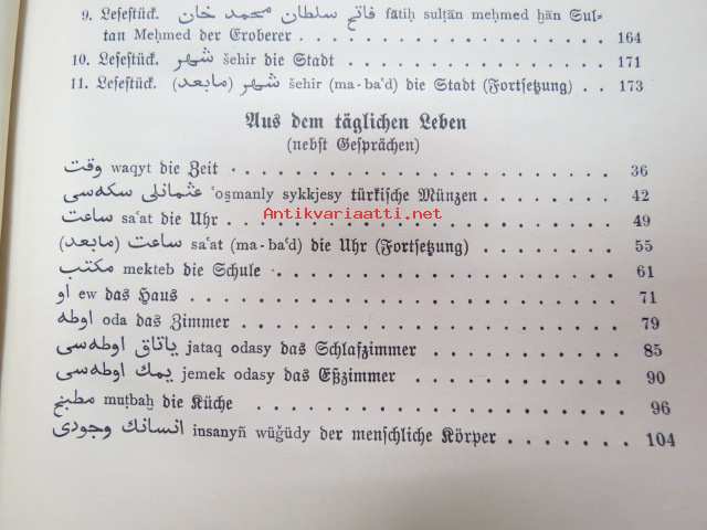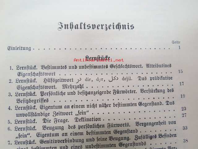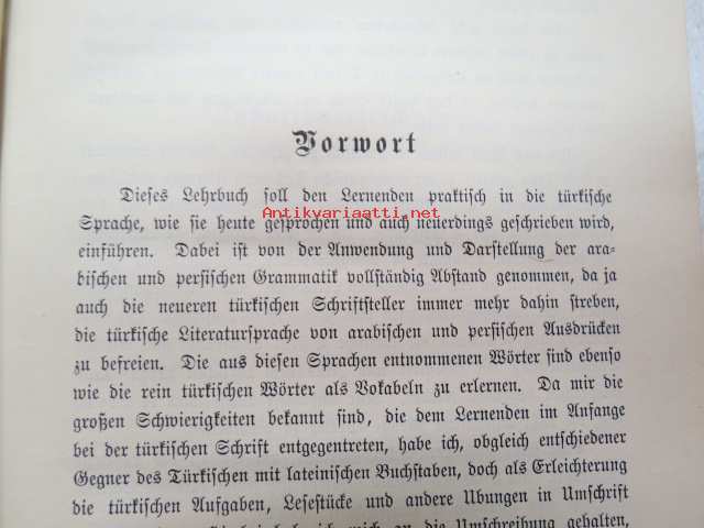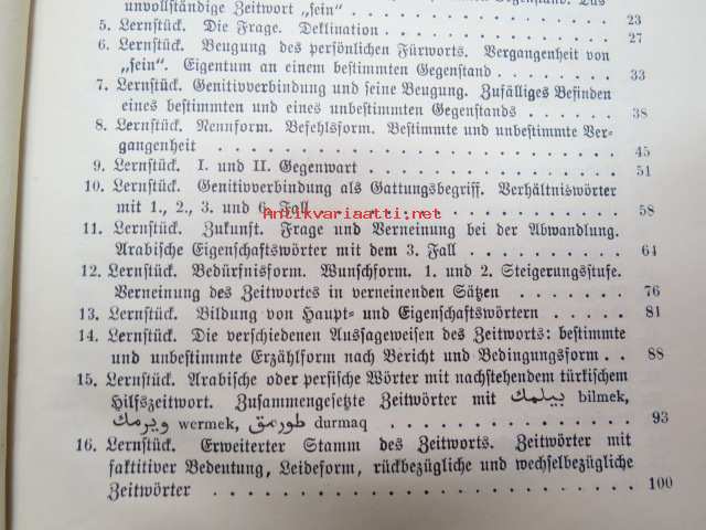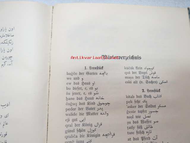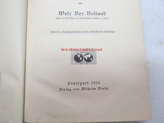 | Saatavilla | 1 kpl | | Julkaisuvuosi | 1916 | | Sivuja | 180 + 50 | | Painos | 2. | | Kunto | K2 | | Sidonta/painoasu | Sidottu (kovak.) | | Kielet | Saksa, Turkki |