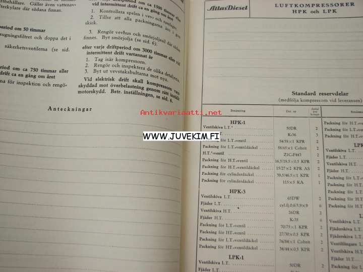 Atlas Diesel Luftkompressor HPK / LPK -instruktionsbok