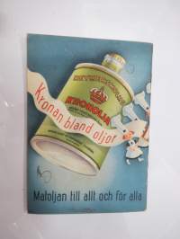 | Saatavilla | 1 kpl | | Julkaisuvuosi | 1938 | | Sivuja | 24 | | Kunto | K2 | | Sidonta/painoasu | Nidottu (pehmeäk.) | | Kielet | Ruotsi |