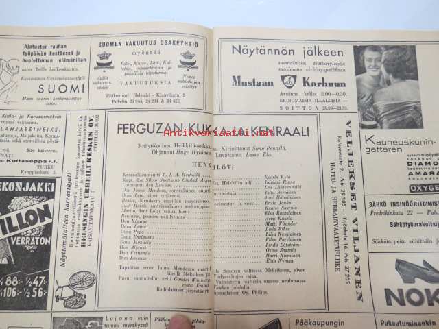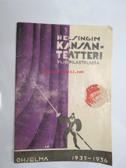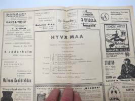 Helsingin Kansanteatteri Ylioppilastalossa - Ohjelma näytäntökausi 1935-1936 - "Ferguzan Kukka ja kenraali" / "Hyvä maa" -käsiohjelma / theatre program