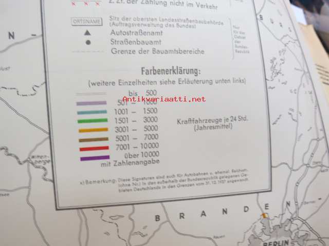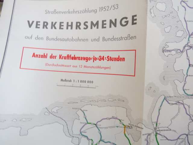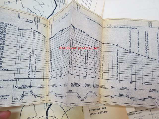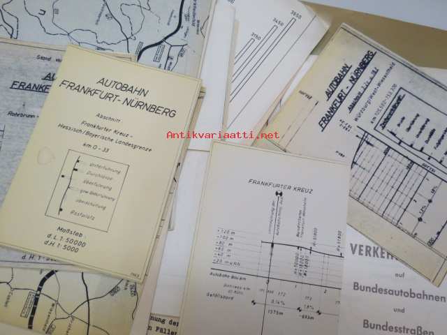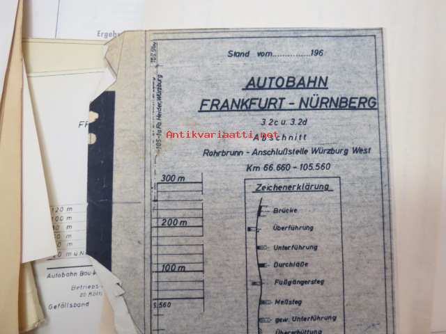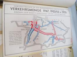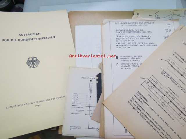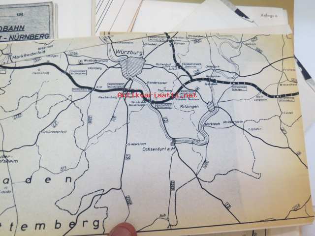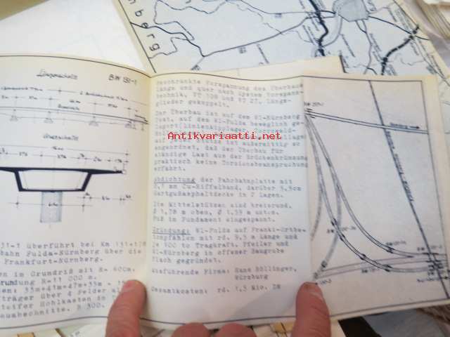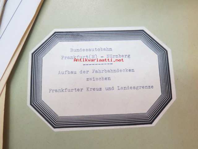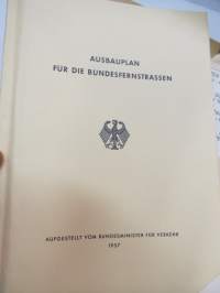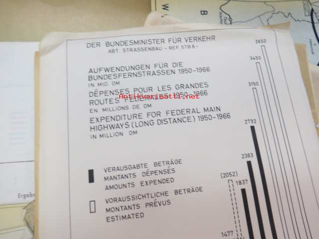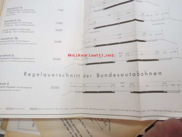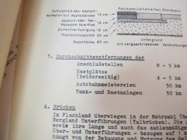 21 x 30 cm kansio, jossa esitellään saksalaisen autobahnin eli moottoritieverkon osien rakentamista.