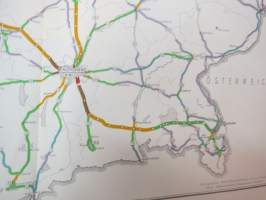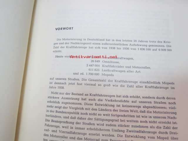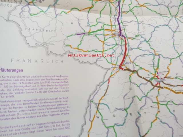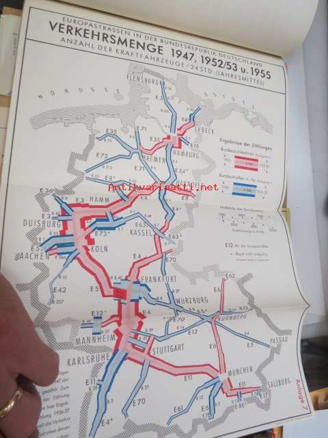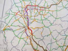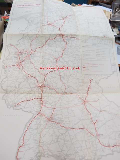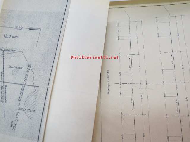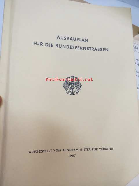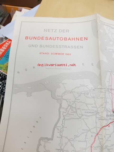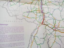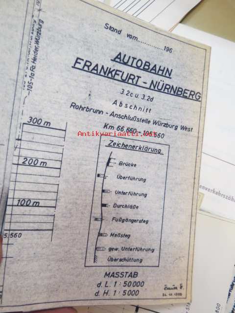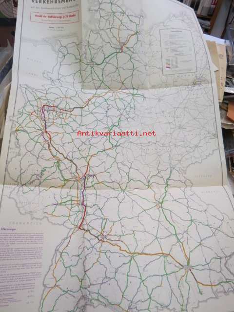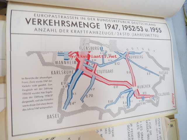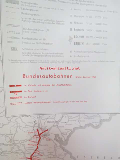 21 x 30 cm kansio, jossa esitellään saksalaisen autobahnin eli moottoritieverkon osien rakentamista.