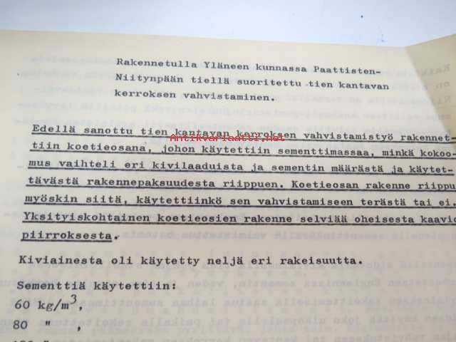 Paattisten - Niitynpään koetieosa, Yläne - Rakennetulla tiellä suoritettu tien kantavan kerroksen vahvistaminen, tekninen selostus ja kuvaliite -road building
