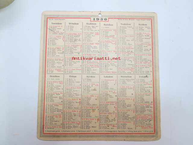 Seinäkalenteri / seinäalmanakka 1950 -wall calendar