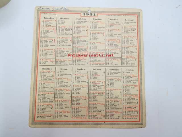Seinäkalenteri / seinäalmanakka 1951 -wall calendar