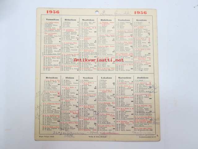 Seinäkalenteri / seinäalmanakka 1956 -wall calendar