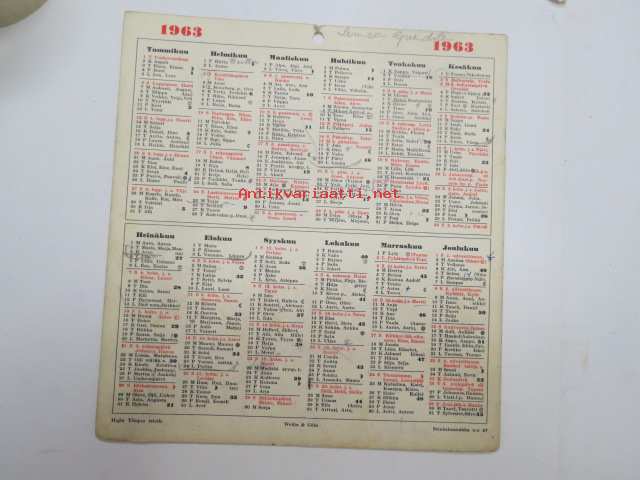 Seinäkalenteri / seinäalmanakka 1963 -wall calendar