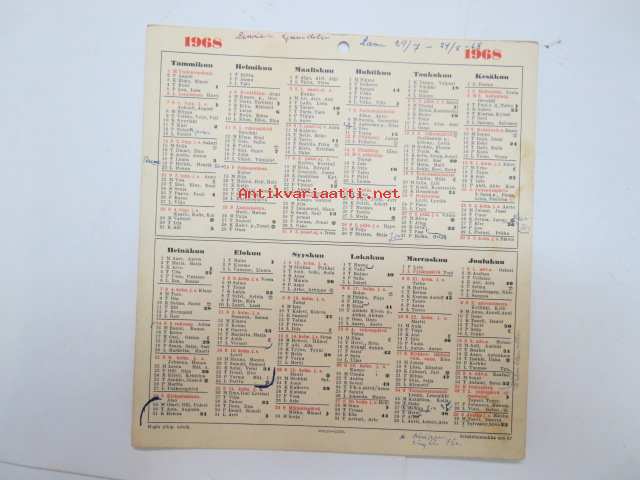 Seinäkalenteri / seinäalmanakka 1968 -wall calendar