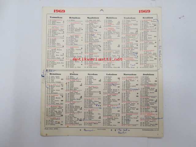 Seinäkalenteri / seinäalmanakka 1969 -wall calendar
