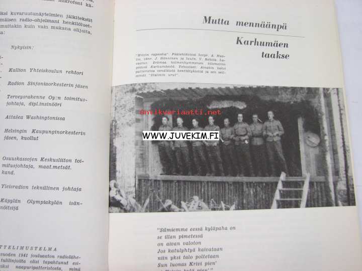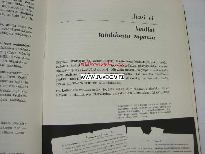| Saatavilla | 1 kpl | | Julkaisuvuosi | 1964 | | Sivuja | 159 | | Painos | 1. | | Kunto | K3 | | Sidonta/painoasu | Sidottu (kovak.) | | Kielet | Suomi |