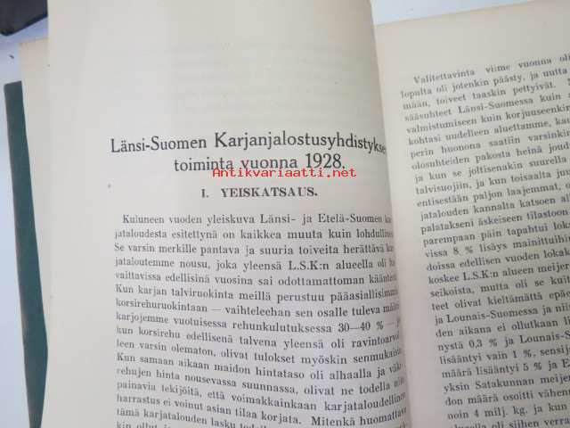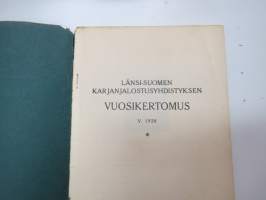 Länsi-Suomen Karjanjalostusyhdistys vuosikertomus v. 1928 -annual report, cattle breeding society