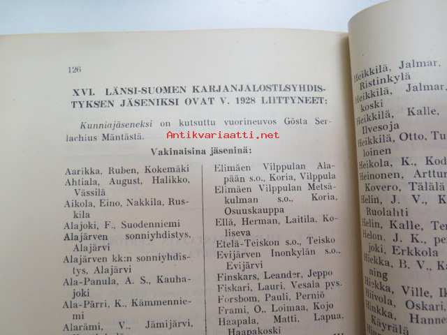 | Saatavilla | 1 kpl | | Julkaisuvuosi | 1929 | | Sivuja | 141 | | Painos | 1. | | Kunto | K2 | | Sidonta/painoasu | Nidottu (pehmeäk.) | | Kielet | Suomi |
