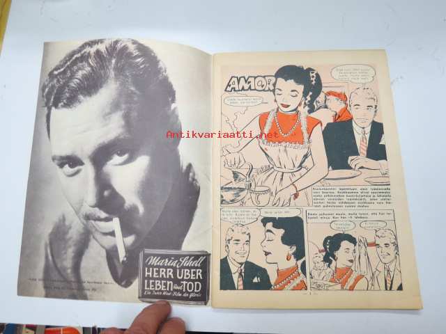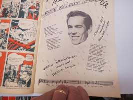 Ajan Sävel 1957 nr 20, kansikuva John Saxon, Takasivun tähtikuva Diane Jergens, Carmen Sevilla, sarjakuvia, kertomuksia, levyarvosteluja, ym.