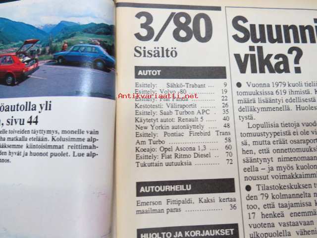 21 x 30 cm. Volvo Concept Car 1980, Emerson Fittipaldi, Käytetyn testi - Renault 5, Pontiac Firebird Trans Am Turbo 4,9,Koeajo Opel Ascona 1,3