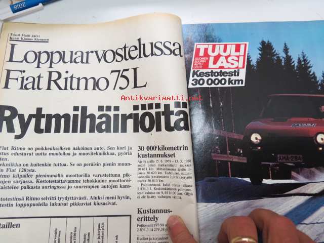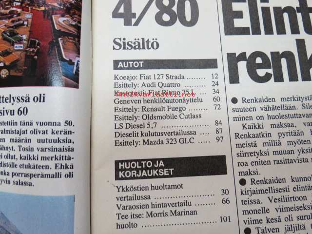Tuulilasi 1980 nr 4, sisältää mm. seur. artikkelit / kuvat / mainokset; Kesärengastesti, Fiat 127 koeajo, Ykköstien huoltoasemat, Fiat Ritmo 75 L 30 000 kestotesti