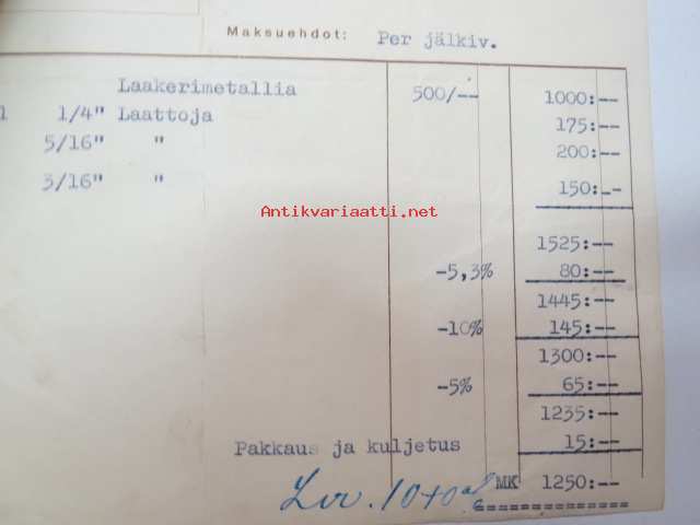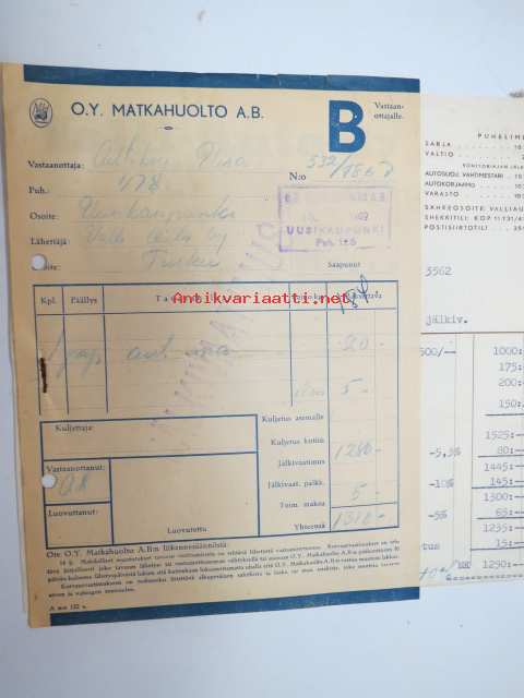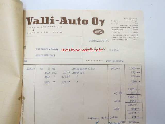 Valli-Auto Oy, Turku 15.8.1949 - Autokoulu ja autokorjaamo Visa, Uusikaupunki -asiakirja / business document