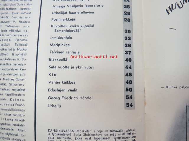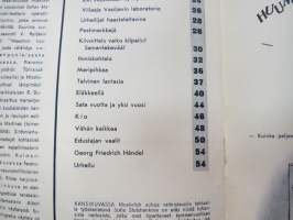 | Saatavilla | 1 kpl | | Julkaisuvuosi | 1959 | | Kunto | K2 | | Sidonta/painoasu | Lehti | | Kielet | Suomi |